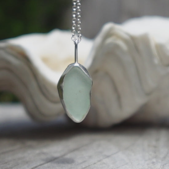 Mystical and soft, the Moonwater Necklace features a frosted white-blue shard of sea glass, glowing softly like moonlight on the ocean. Delicately set in sterling silver, it’s a tranquil, luminous piece for day-to-night wear.