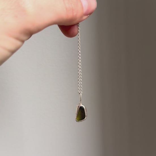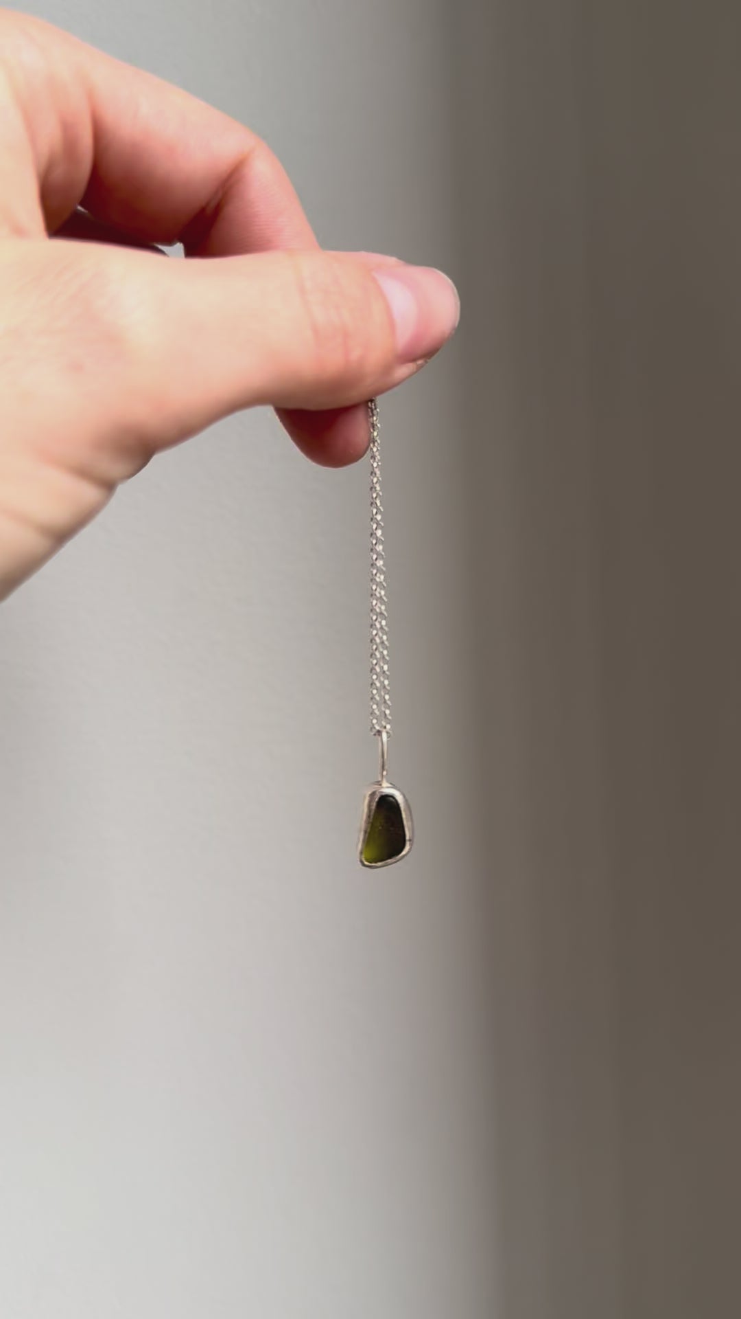 Polperro was one of the very first places I explored in Cornwall, visited the same day as Looe - but something about Polperro felt different. It carried a brighter air, full of charm and possibility, and I even thought about finding work there. This glowing green sea glass pendant, set in sterling silver, holds that first spark of connection.